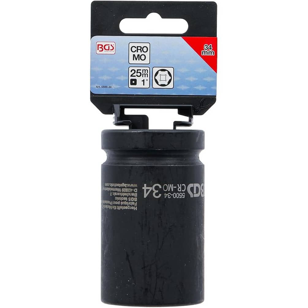 Douille à Choc Six Pans Longue 25 mm (1 ) - 34 mm - Puissance et Précision - BGS