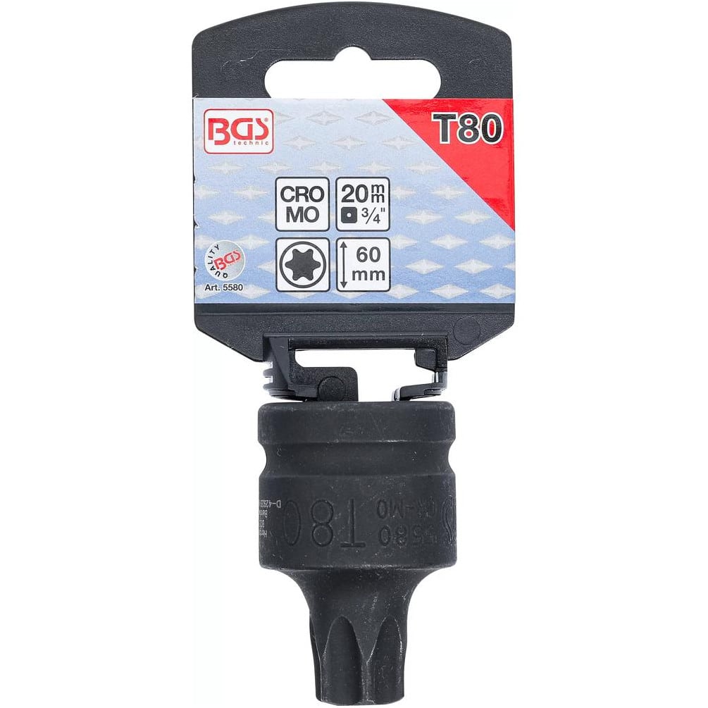 Douille à Embouts de Puissance 60 mm - 20 mm (3/4 ), Profil Torx T80 - , Résistante et Précise - BGS