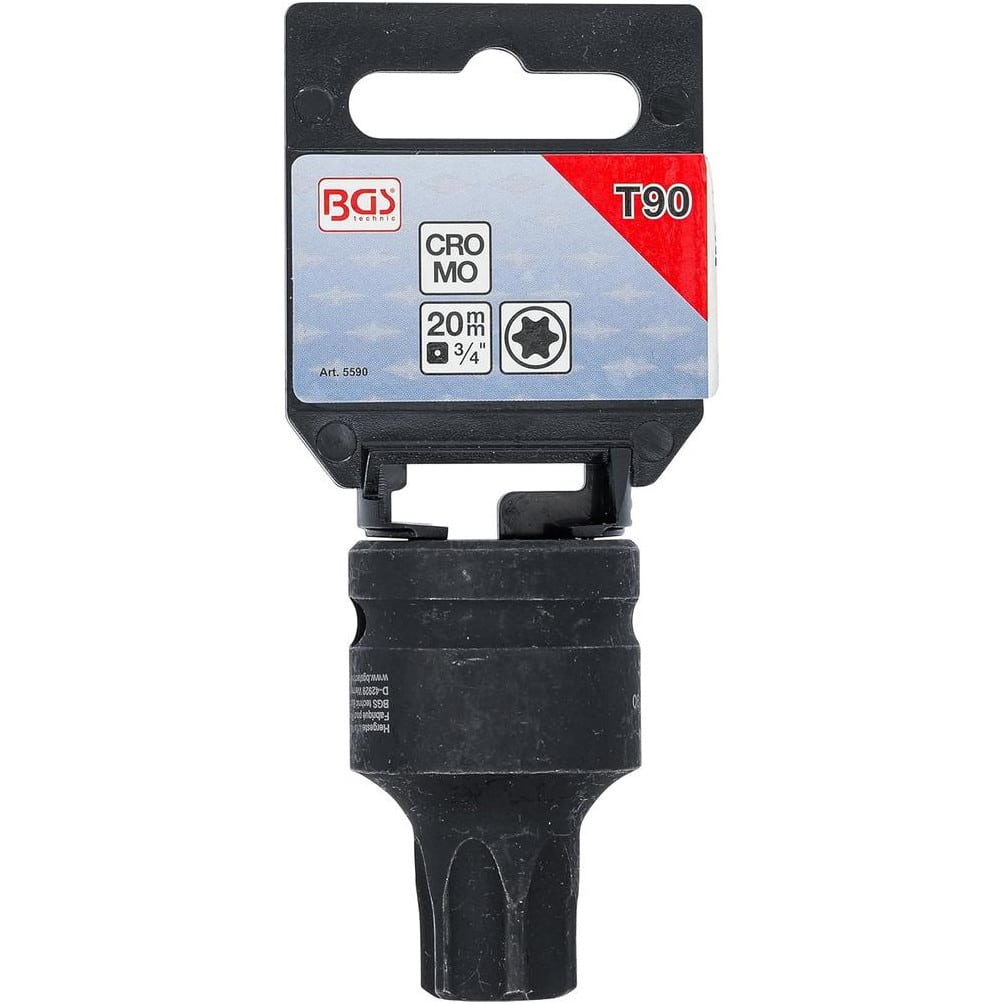 Douille à Embouts de Puissance 60 mm - Profil Torx T90, 20 mm (3/4\ ) - , Résistante et Précise - BGS