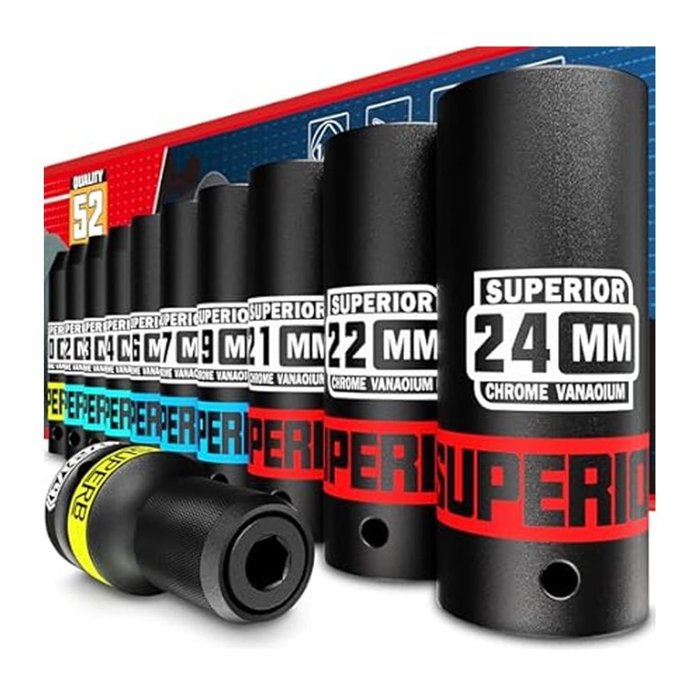 Coffret de 10 Douilles 1/2" – Longueur 78 mm – Outils de Précision – Idéal pour Réparations - RIBIMEX