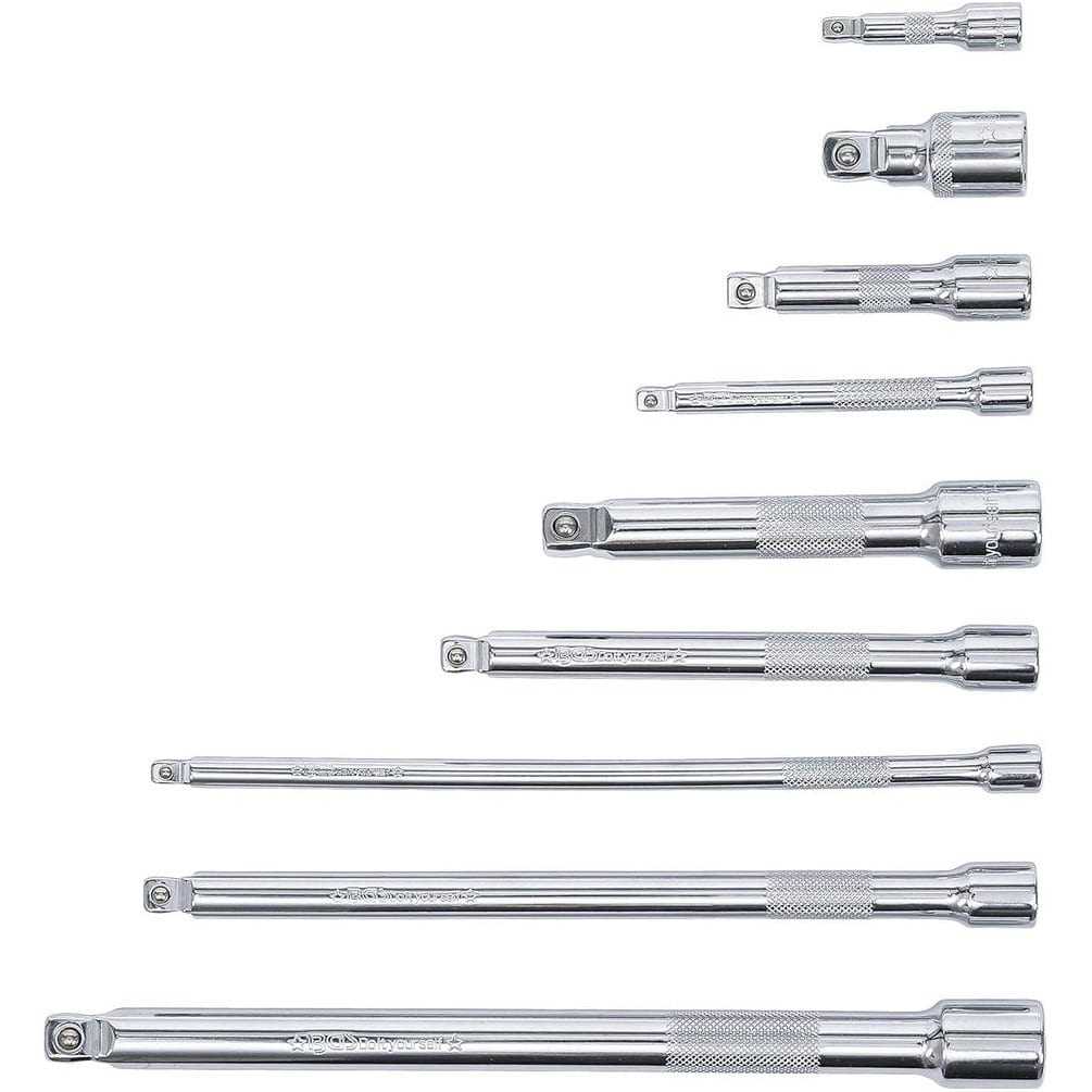 Jeu de Rallonges Basculantes 9 Pièces - 6,3 mm (1/4 ), 10 mm (3/8 ), 12,5 mm (1/2 ) - Acier Résistant - Polyvalence et Pra - BGS