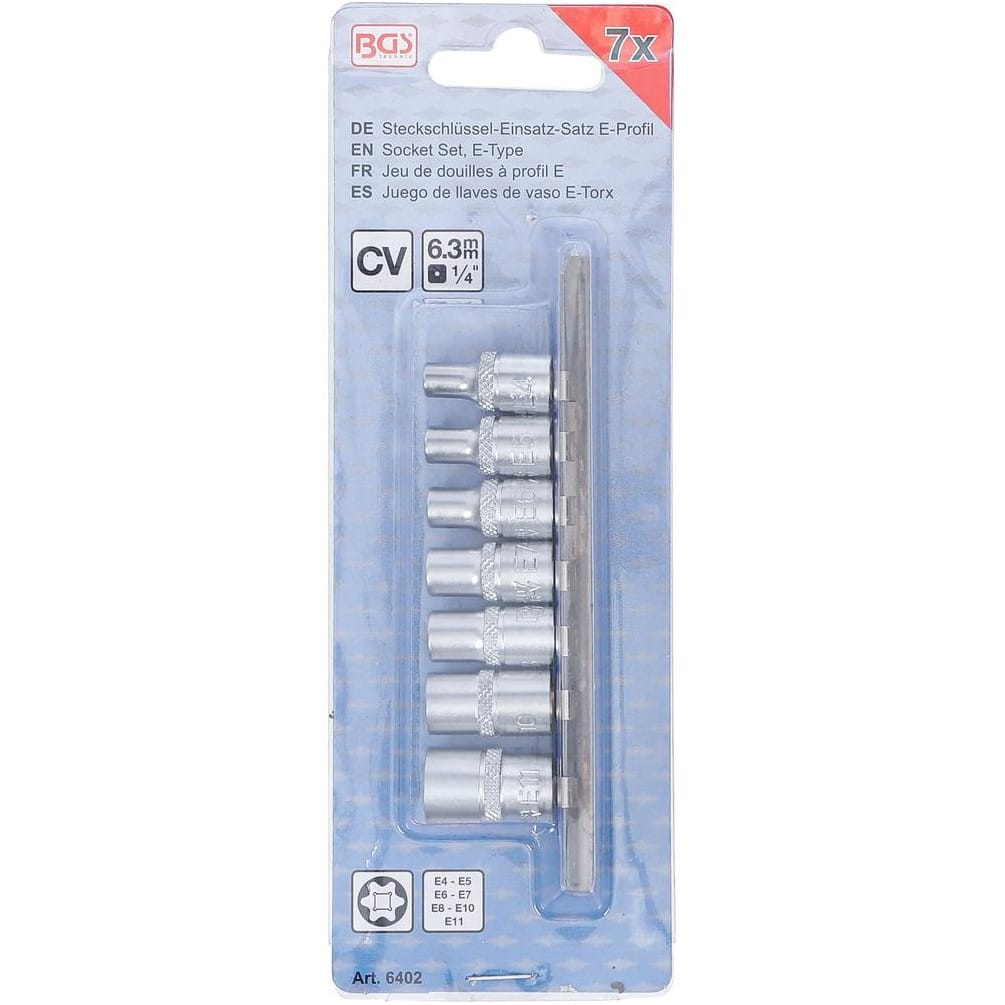 Jeu de Douilles à Profil E 6,3 mm (1/4 ) E4 - E11 - 7 Pièces - Précision et Polyvalence - BGS