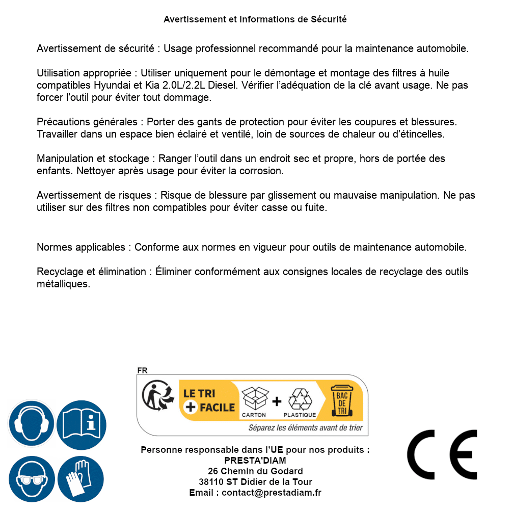 | Persona responsabile UE | PRESTA'DIAM 26 Chemin du Godard 38110 ST Didier de la Tour Email : contact@prestadiam.fr |