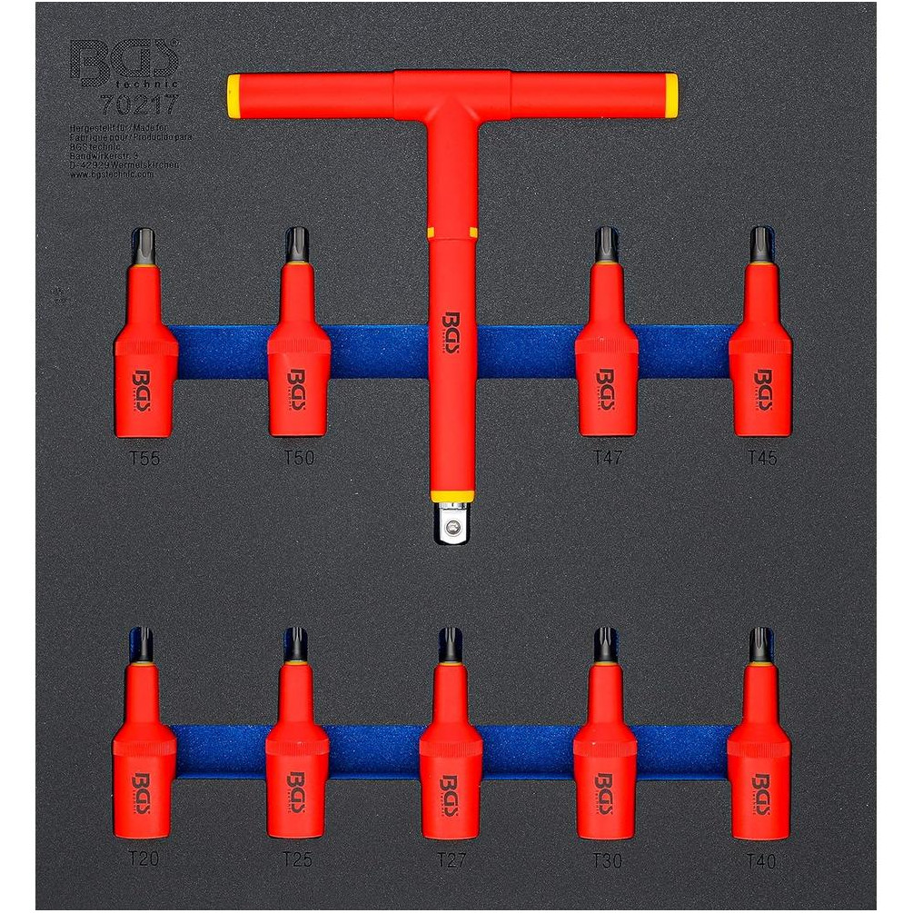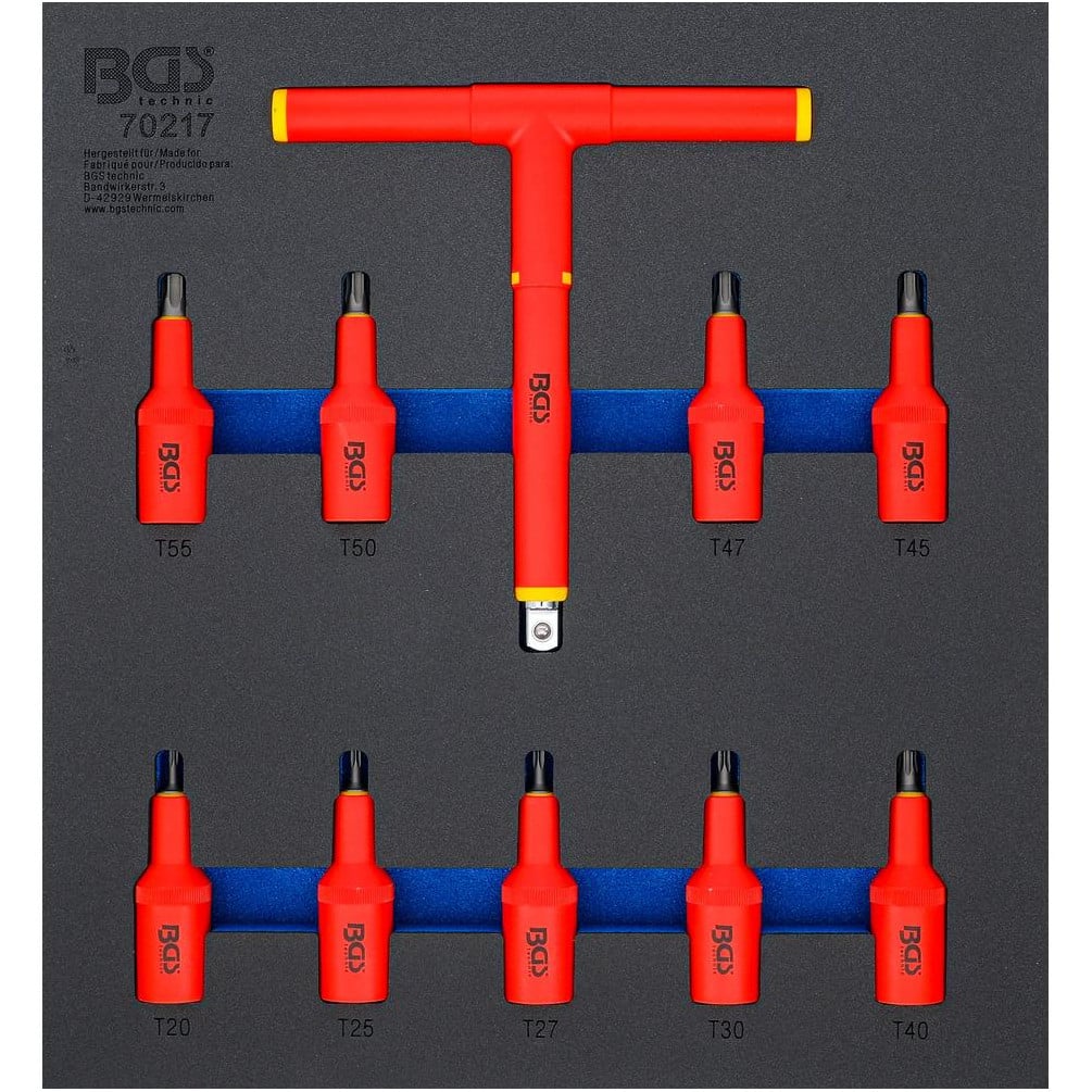 Jeu de 10 Douilles à Embouts VDE 12,5 mm (1/2 ) Profil T Torx T20-T55 - Insert Servante d’Atelier 2/3 - Sécurité et Précis - BGS