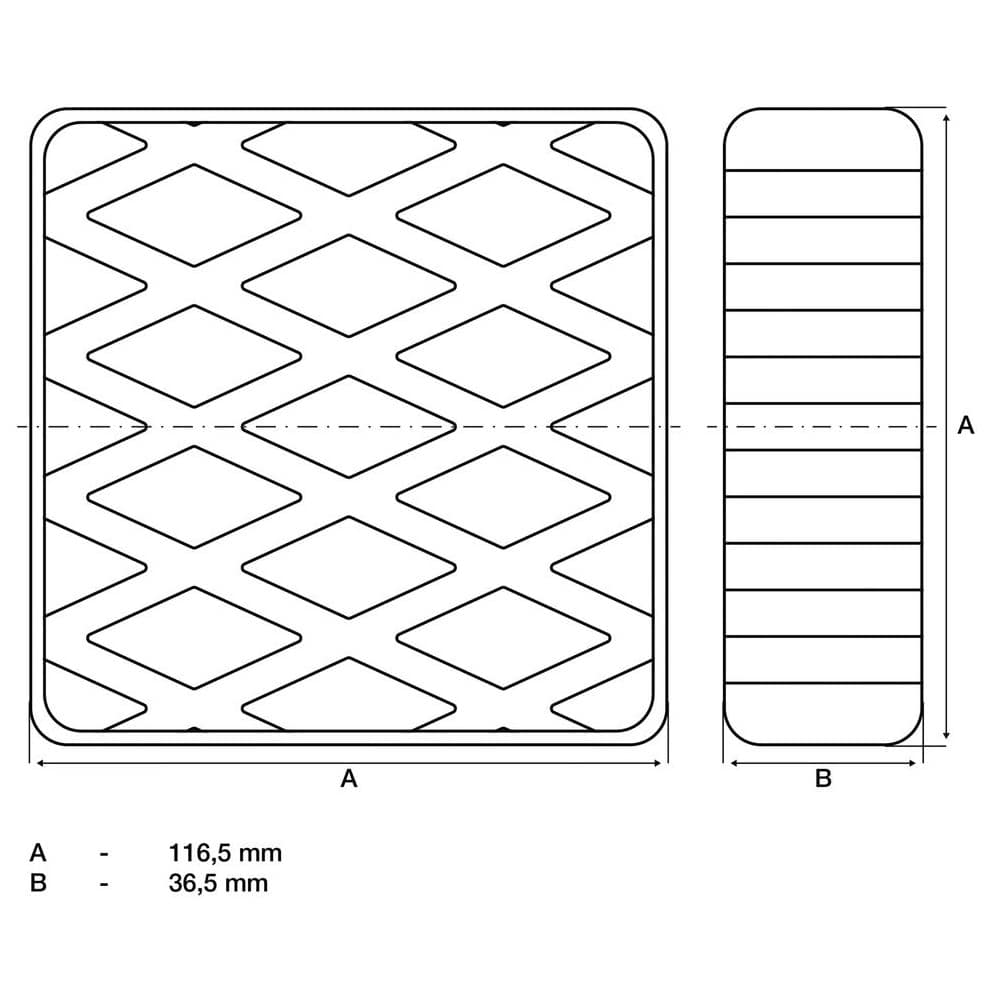 Tampon en Caoutchouc pour Pont Élévateur 116,5x116,5x36,5 mm - Résistant et Antidérapant - - BGS