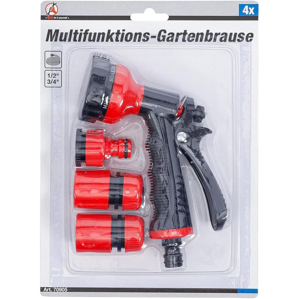 Pistolet d’Arrosage Multifonctionnel - 4 Pièces - Accessoires Complets - Arrosage Précis et Polyvalent - BGS