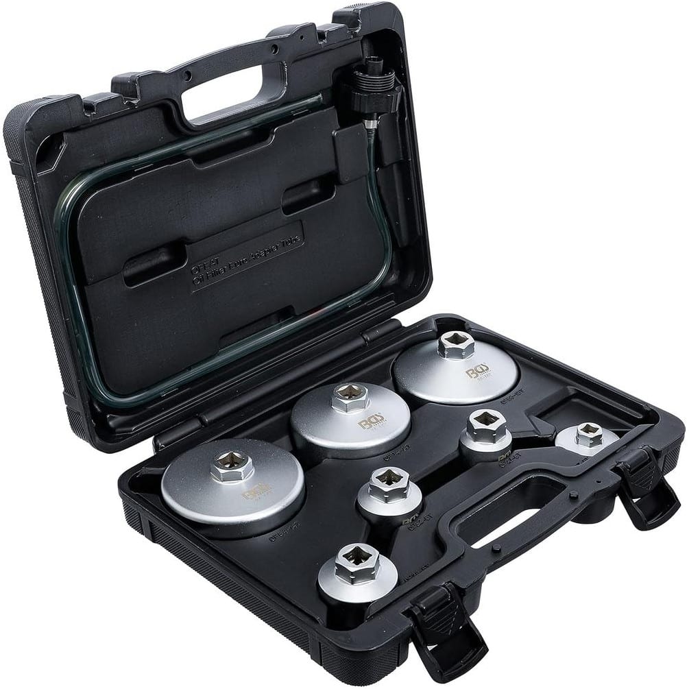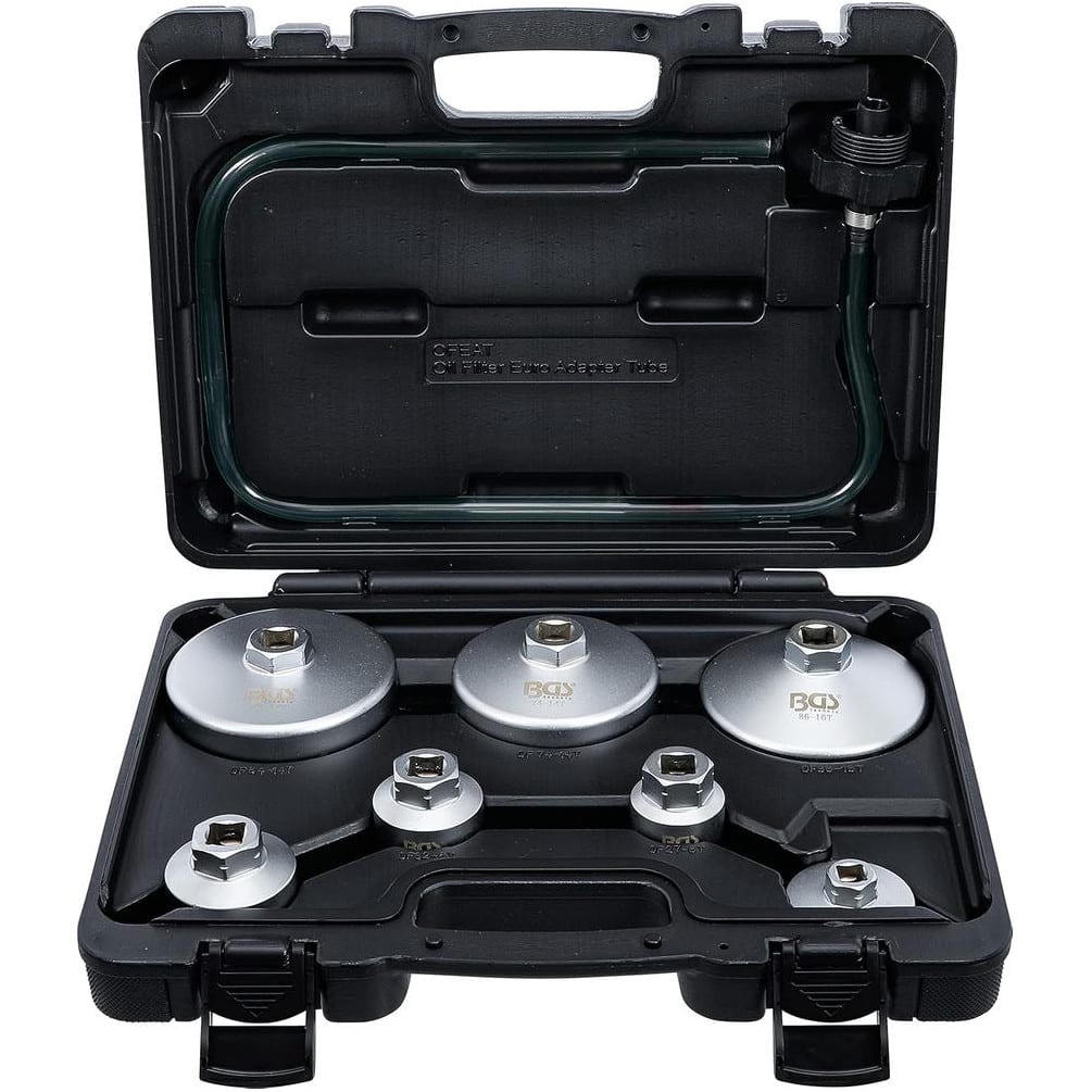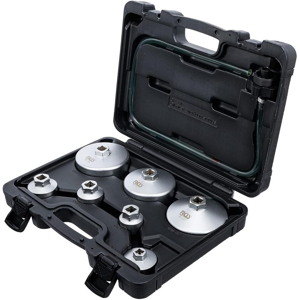 Jeu de Clés à Filtres Cloches 8 pièces - Tuyau de Vidange Inclus - Compatible VAG, BMW, Citroën, Peugeot, Ford, Mercedes-B - BGS
