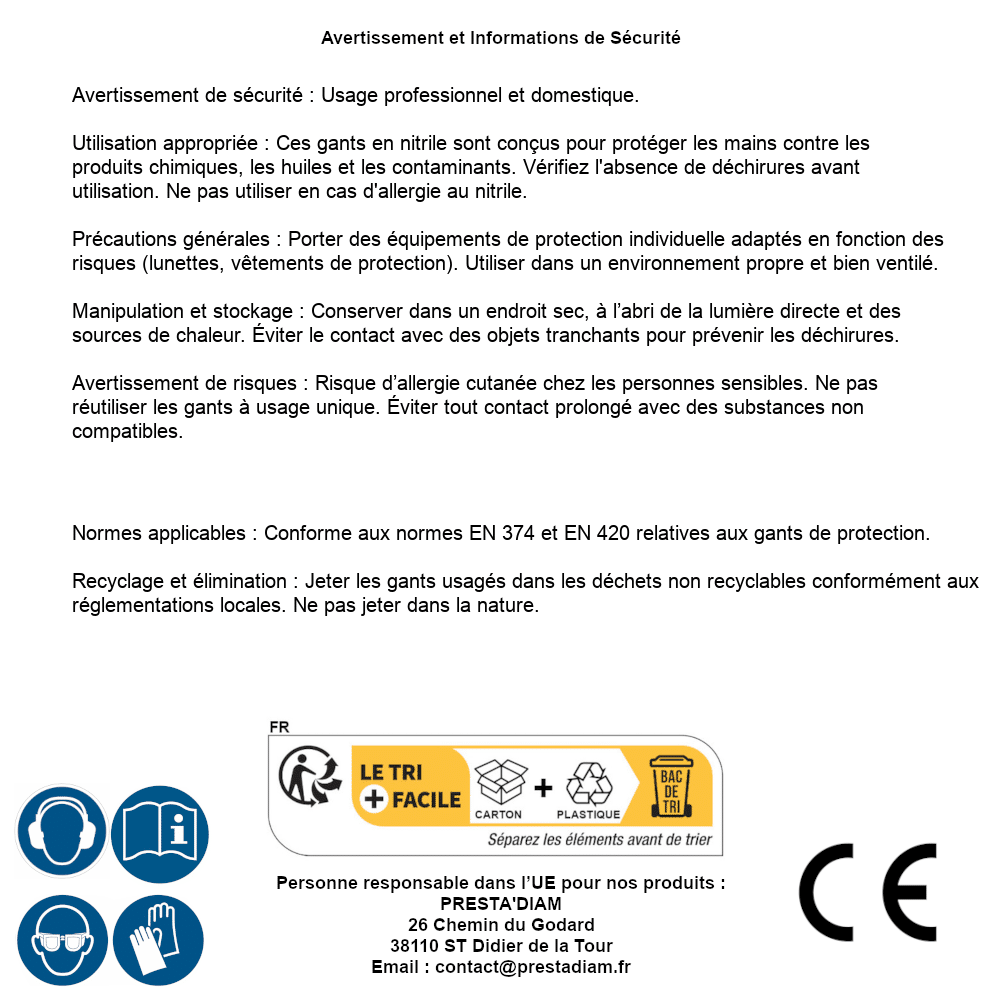 | Persona responsabile UE | PRESTA'DIAM 26 Chemin du Godard 38110 ST Didier de la Tour Email : contact@prestadiam.fr |