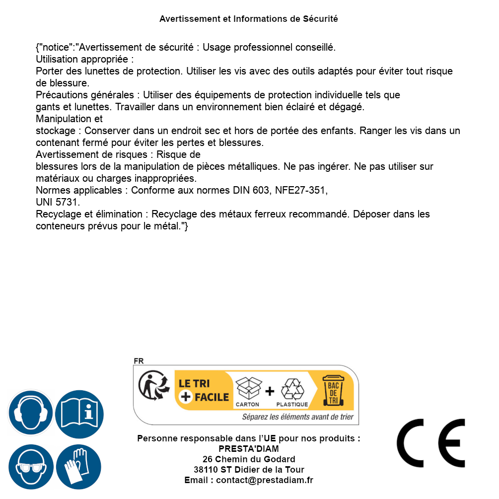 | Persona responsabile UE | PRESTA'DIAM 26 Chemin du Godard 38110 ST Didier de la Tour Email : contact@prestadiam.fr |