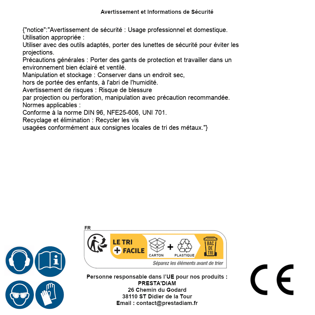 | Persona responsabile UE | PRESTA'DIAM 26 Chemin du Godard 38110 ST Didier de la Tour Email : contact@prestadiam.fr |