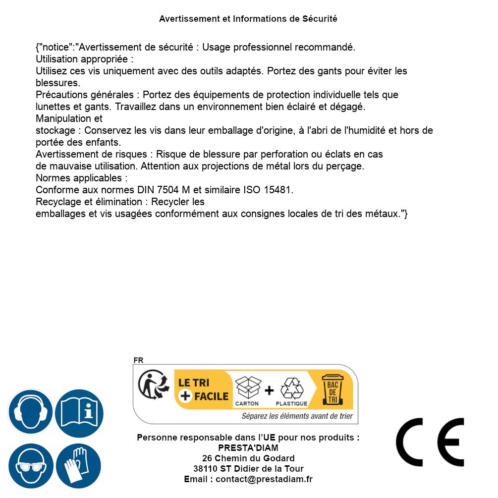 | Persona responsabile UE | PRESTA'DIAM 26 Chemin du Godard 38110 ST Didier de la Tour Email : contact@prestadiam.fr |