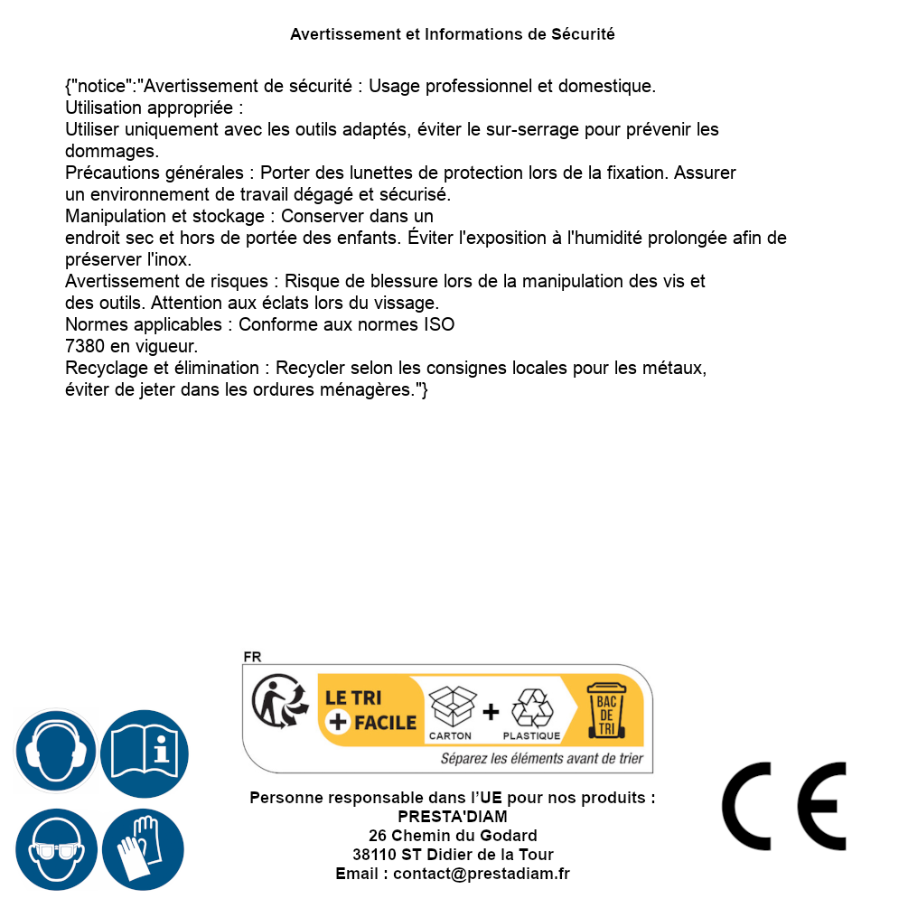 | Persona responsabile UE | PRESTA'DIAM 26 Chemin du Godard 38110 ST Didier de la Tour Email : contact@prestadiam.fr |