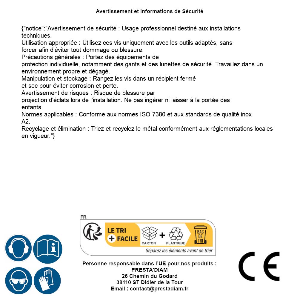 | Persona responsabile UE | PRESTA'DIAM 26 Chemin du Godard 38110 ST Didier de la Tour Email : contact@prestadiam.fr |