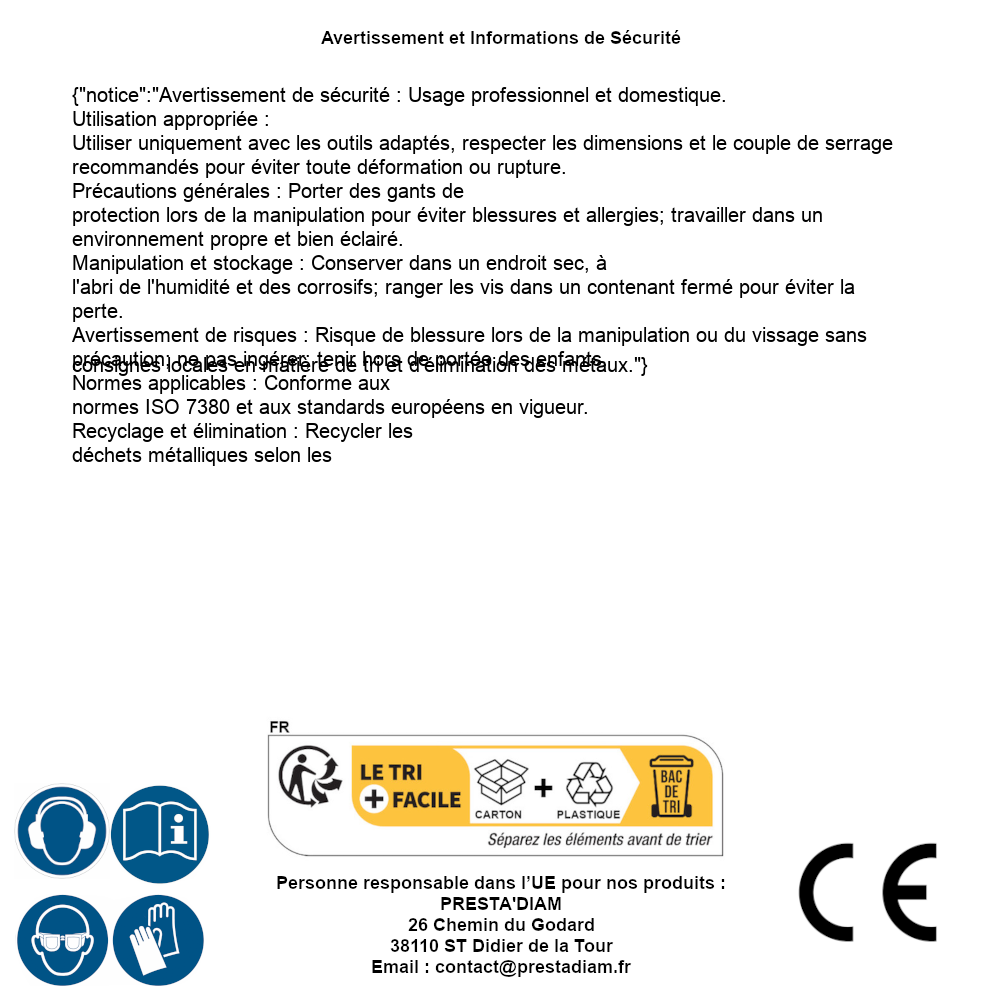 | Persona responsabile UE | PRESTA'DIAM 26 Chemin du Godard 38110 ST Didier de la Tour Email : contact@prestadiam.fr |