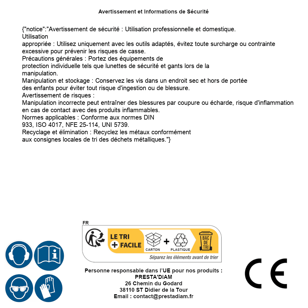 | Persona responsabile UE | PRESTA'DIAM 26 Chemin du Godard 38110 ST Didier de la Tour Email : contact@prestadiam.fr |