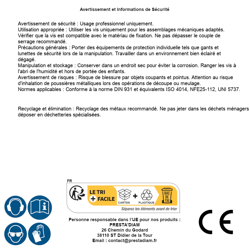 | Persona responsabile UE | PRESTA'DIAM 26 Chemin du Godard 38110 ST Didier de la Tour Email : contact@prestadiam.fr |