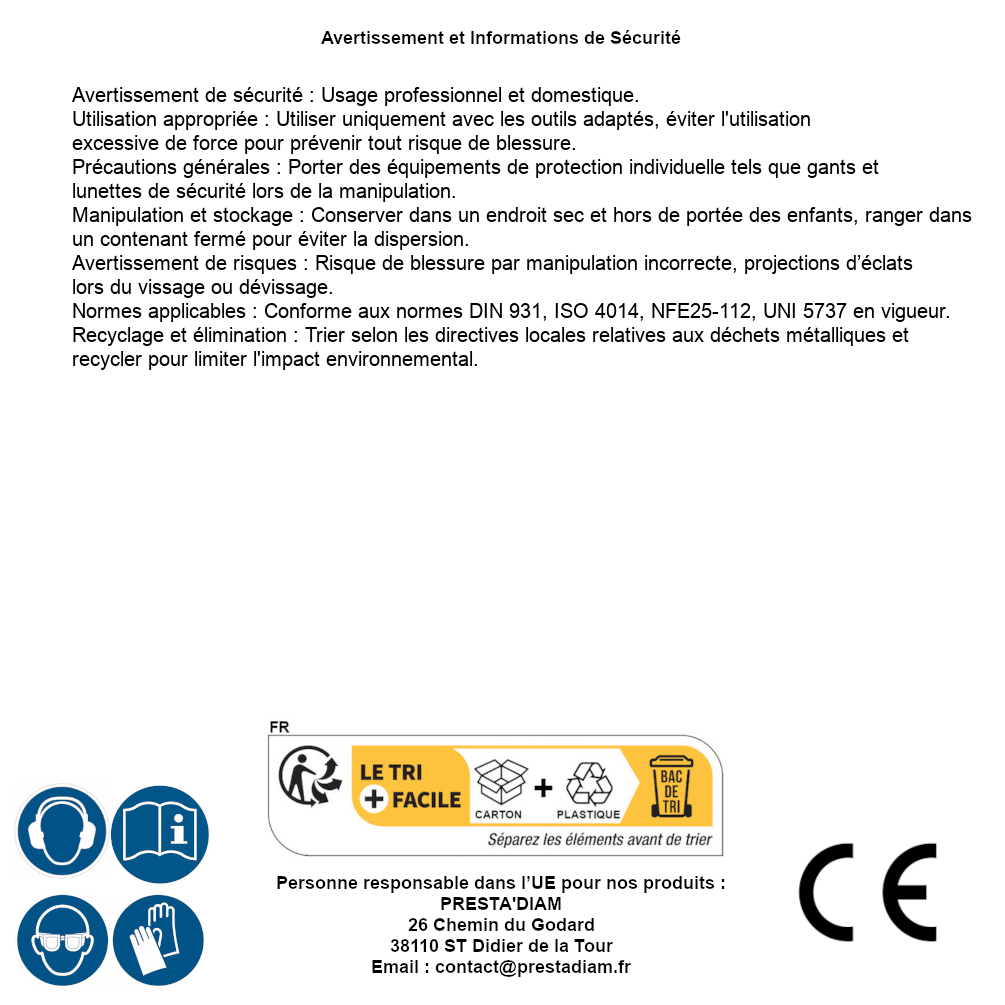 | Persona responsabile UE | PRESTA'DIAM 26 Chemin du Godard 38110 ST Didier de la Tour Email : contact@prestadiam.fr |