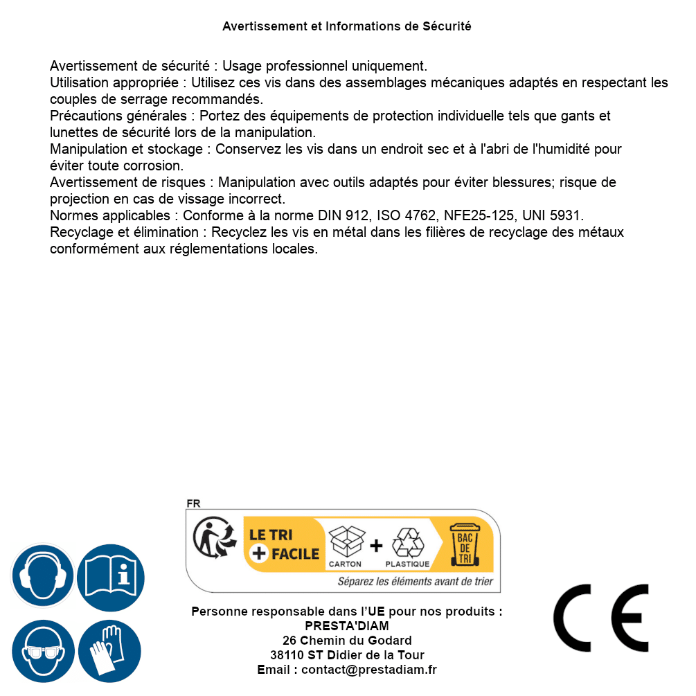 | Persona responsabile UE | PRESTA'DIAM 26 Chemin du Godard 38110 ST Didier de la Tour Email : contact@prestadiam.fr |