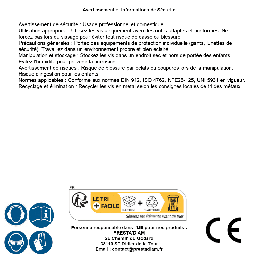 | Persona responsabile UE | PRESTA'DIAM 26 Chemin du Godard 38110 ST Didier de la Tour Email : contact@prestadiam.fr |