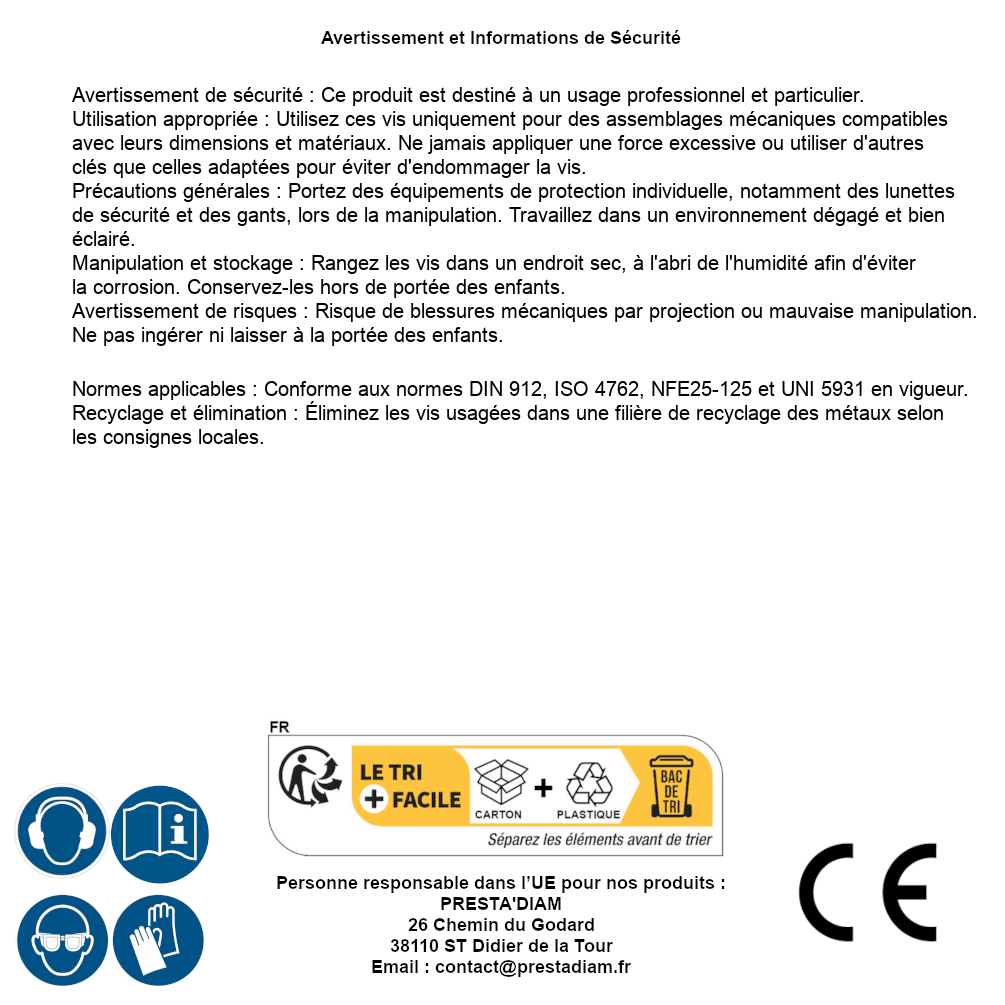| Persona responsabile UE | PRESTA'DIAM 26 Chemin du Godard 38110 ST Didier de la Tour Email : contact@prestadiam.fr |