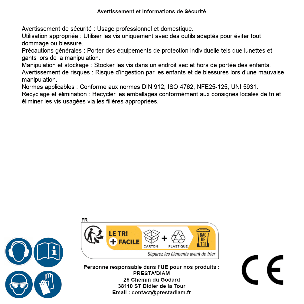 | Persona responsabile UE | PRESTA'DIAM 26 Chemin du Godard 38110 ST Didier de la Tour Email : contact@prestadiam.fr |