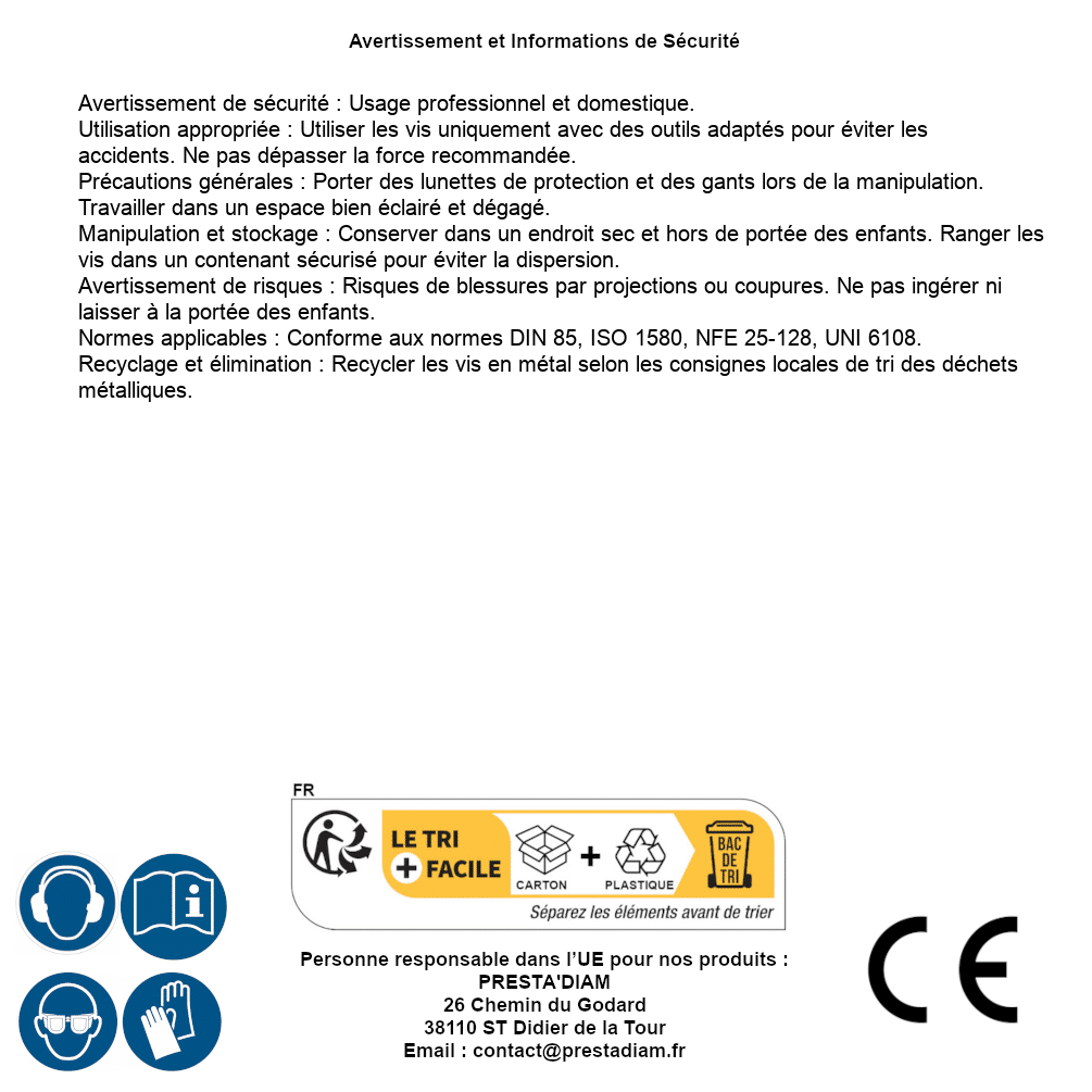 | Persona responsabile UE | PRESTA'DIAM 26 Chemin du Godard 38110 ST Didier de la Tour Email : contact@prestadiam.fr |