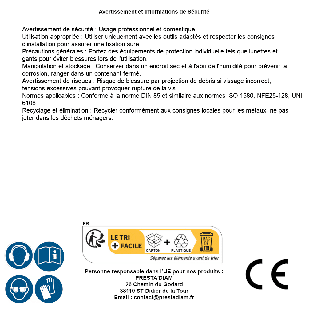 | Persona responsabile UE | PRESTA'DIAM 26 Chemin du Godard 38110 ST Didier de la Tour Email : contact@prestadiam.fr |