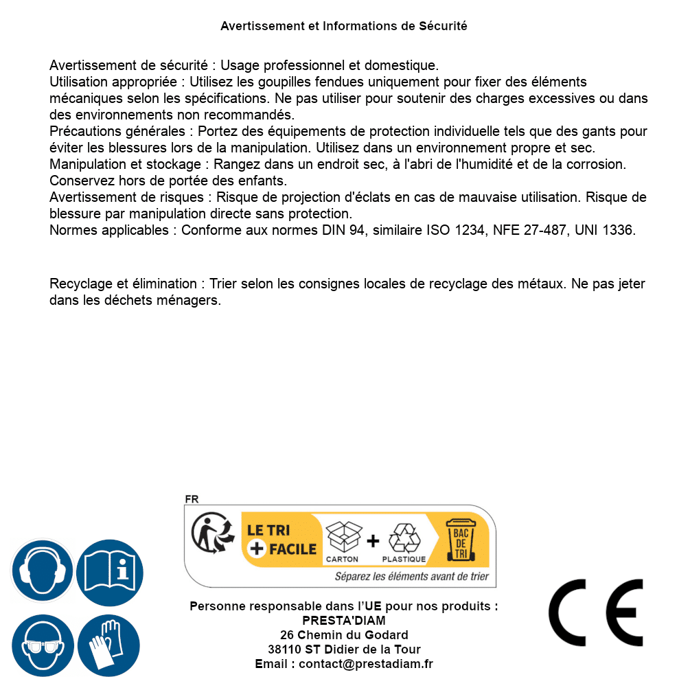 | Persona responsabile UE | PRESTA'DIAM 26 Chemin du Godard 38110 ST Didier de la Tour Email : contact@prestadiam.fr |