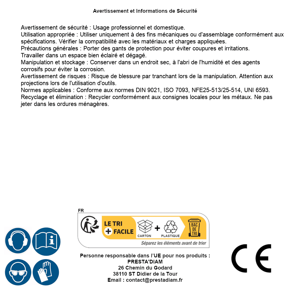 | Persona responsabile UE | PRESTA'DIAM 26 Chemin du Godard 38110 ST Didier de la Tour Email : contact@prestadiam.fr |