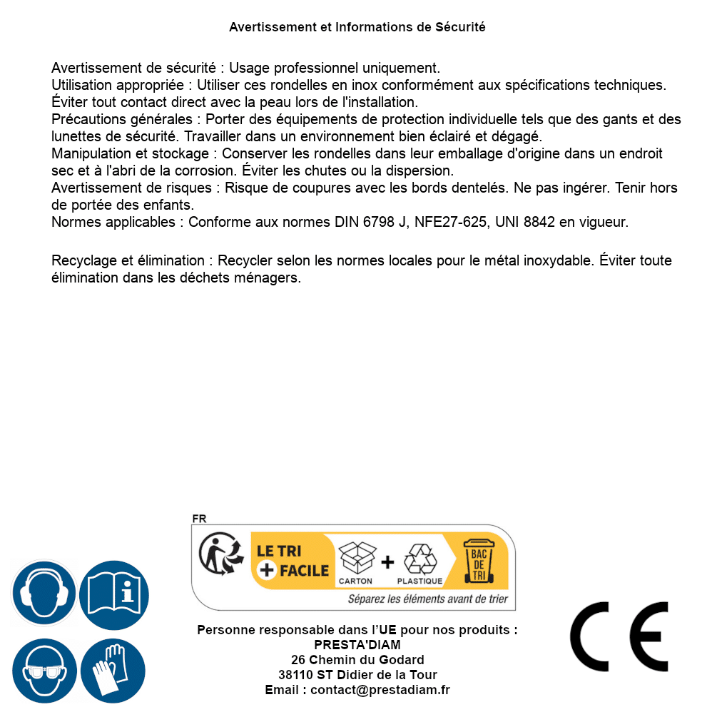| Persona responsabile UE | PRESTA'DIAM 26 Chemin du Godard 38110 ST Didier de la Tour Email : contact@prestadiam.fr |