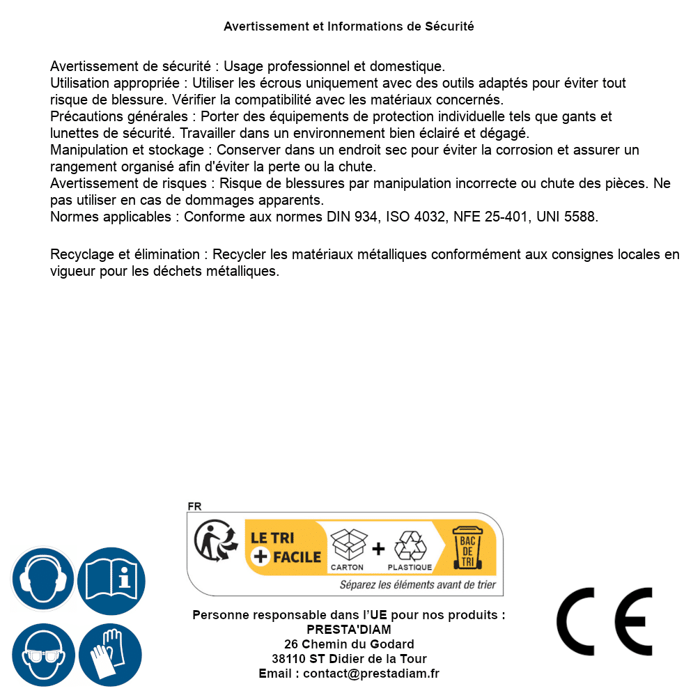 | Persona responsabile UE | PRESTA'DIAM 26 Chemin du Godard 38110 ST Didier de la Tour Email : contact@prestadiam.fr |