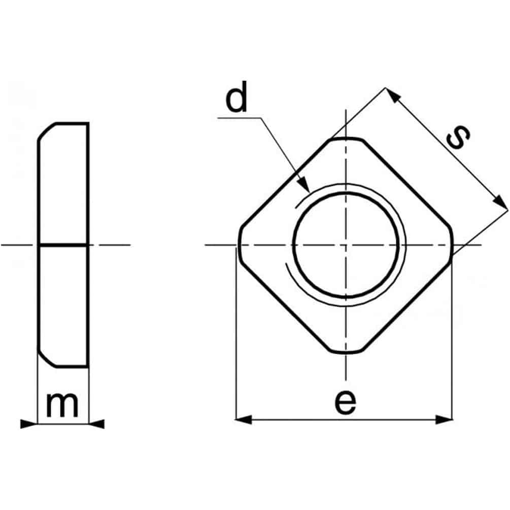 200 Écrous bas carrés M4 - Inox A2, norme DIN 562 - ACTON