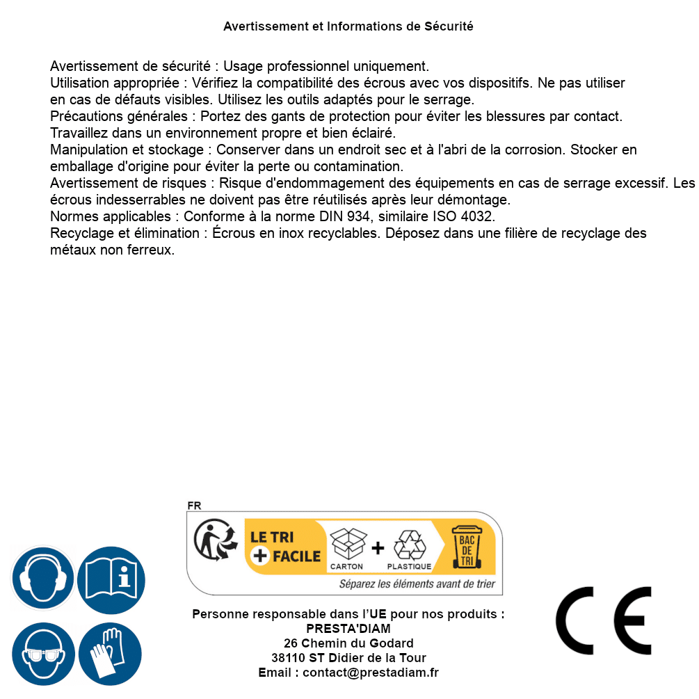 | Persona responsabile UE | PRESTA'DIAM 26 Chemin du Godard 38110 ST Didier de la Tour Email : contact@prestadiam.fr |