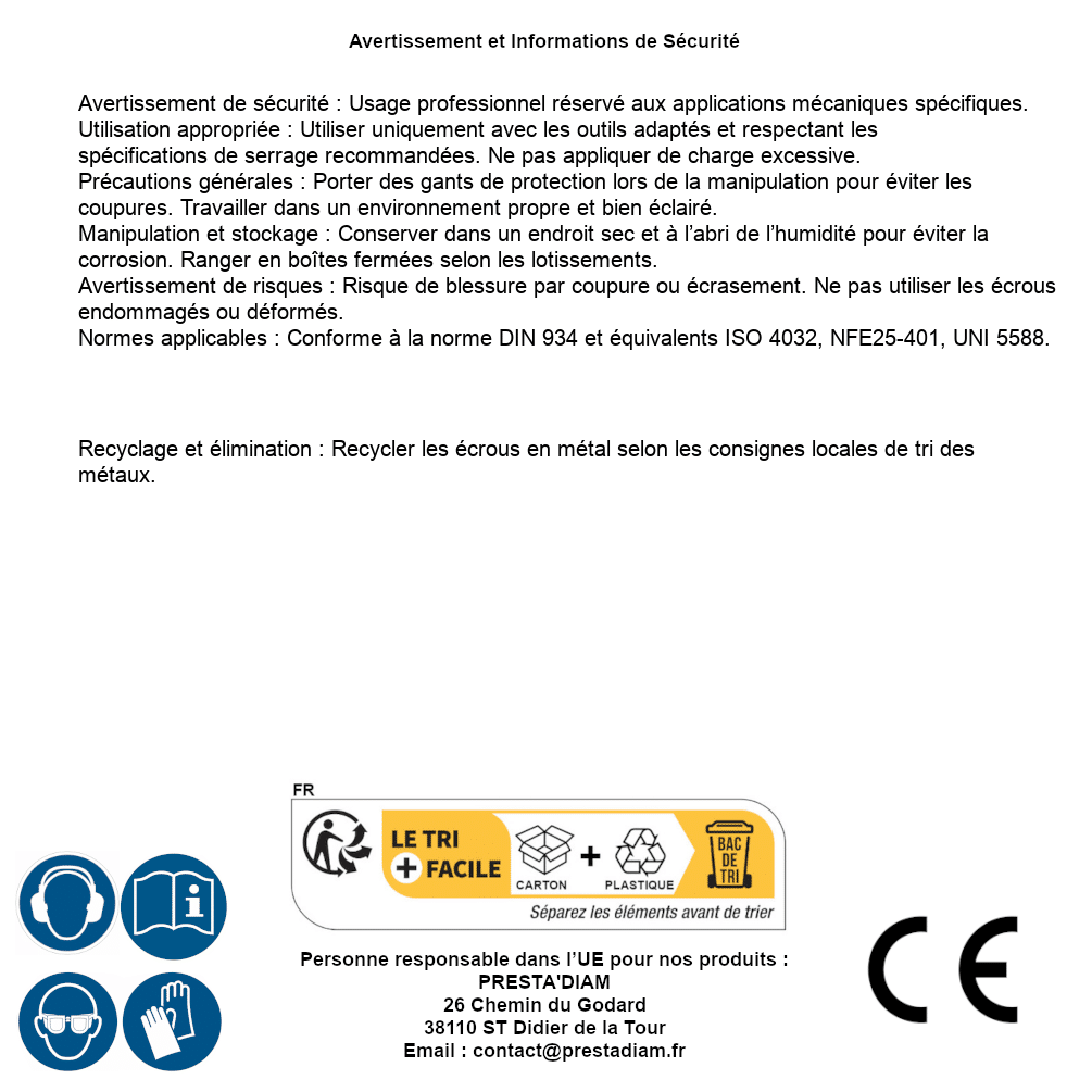 | Persona responsabile UE | PRESTA'DIAM 26 Chemin du Godard 38110 ST Didier de la Tour Email : contact@prestadiam.fr |