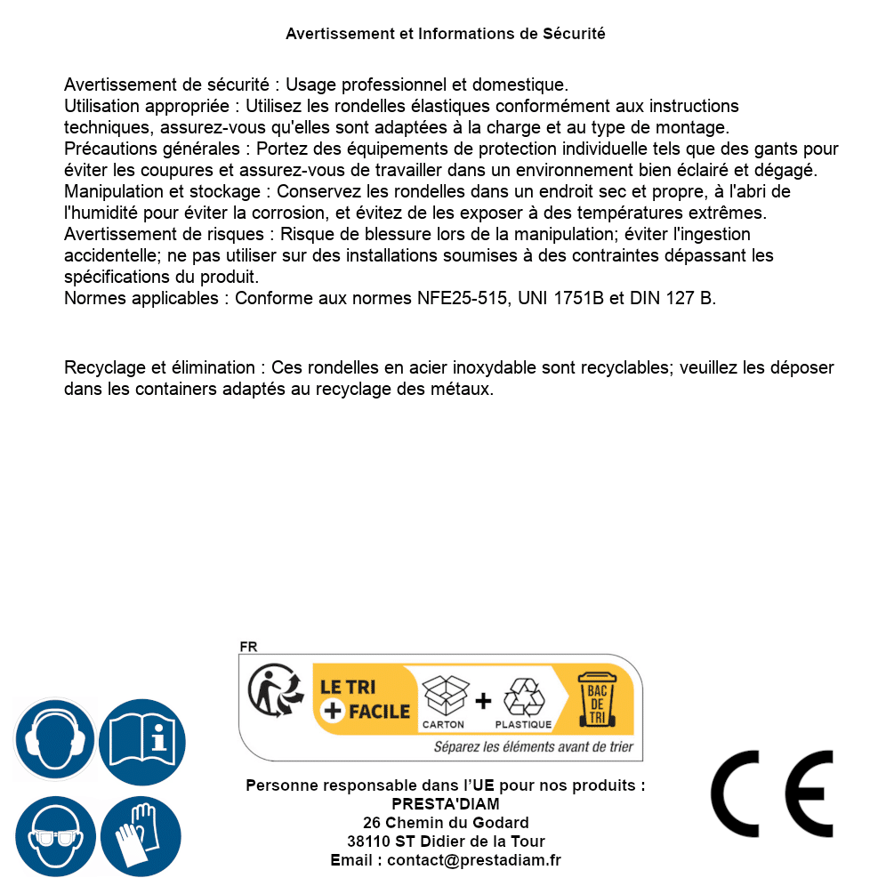 | Persona responsabile UE | PRESTA'DIAM 26 Chemin du Godard 38110 ST Didier de la Tour Email : contact@prestadiam.fr |