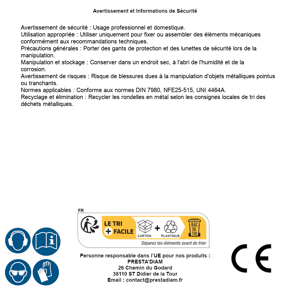 | Persona responsabile UE | PRESTA'DIAM 26 Chemin du Godard 38110 ST Didier de la Tour Email : contact@prestadiam.fr |