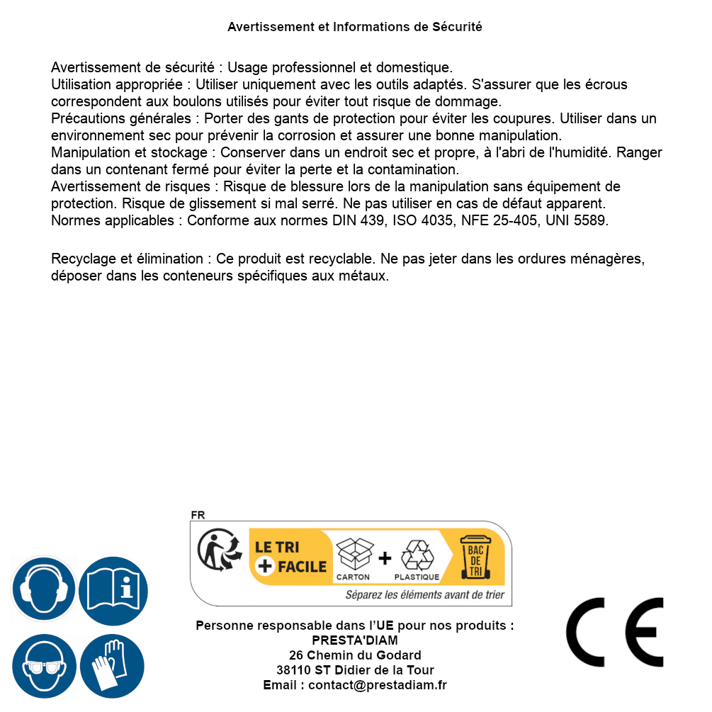 | Persona responsabile UE | PRESTA'DIAM 26 Chemin du Godard 38110 ST Didier de la Tour Email : contact@prestadiam.fr |
