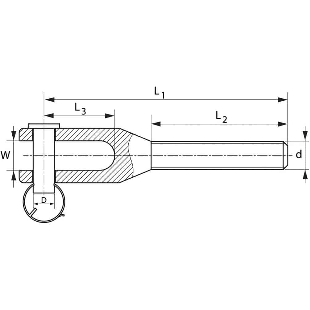 5 Embouts filetés à chape usinée 8 mm - Inox A4 - Pas à droite - ACTON