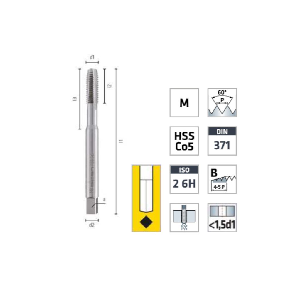 Taraud à Rainurer HSS Emmanchement Hexagonal 1/4 Filetage Métrique ISO 5 mm - Longueur Totale 36 mm - ALPEN-MAYKESTAG