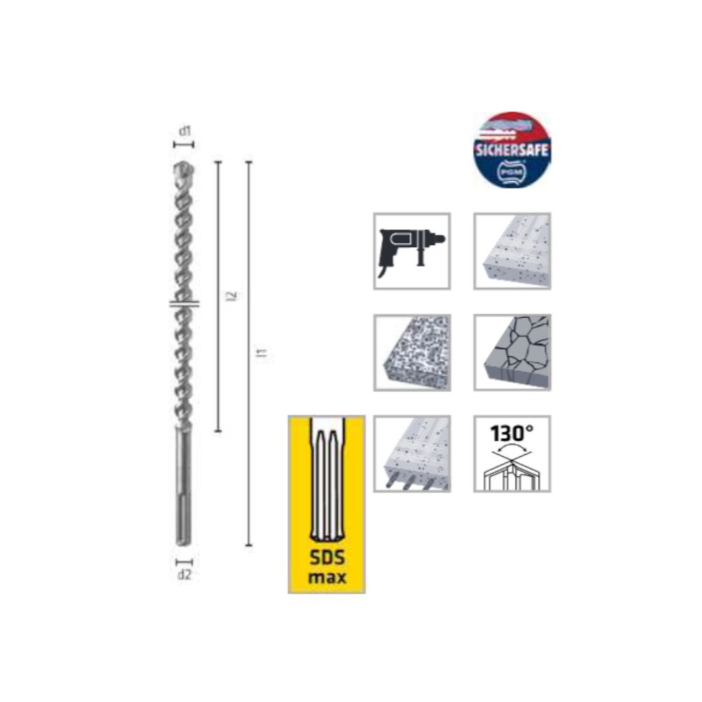 Foret Pour Marteau Perforateur SDS-Max Ø20 mm Long. Tot. 920 mm Long. Coupe 800 mm - ALPEN-MAYKESTAG